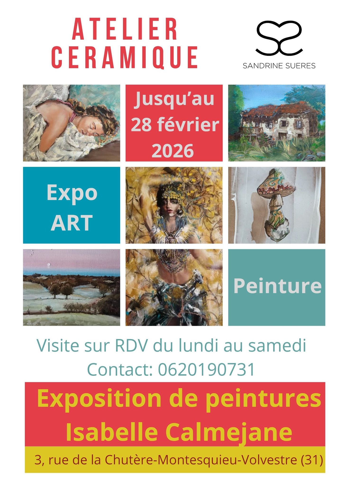 Prenez rendez-vous auprès de Sandrine Sueres pour découvrir son exposition à Montesquieu-Volvestre !