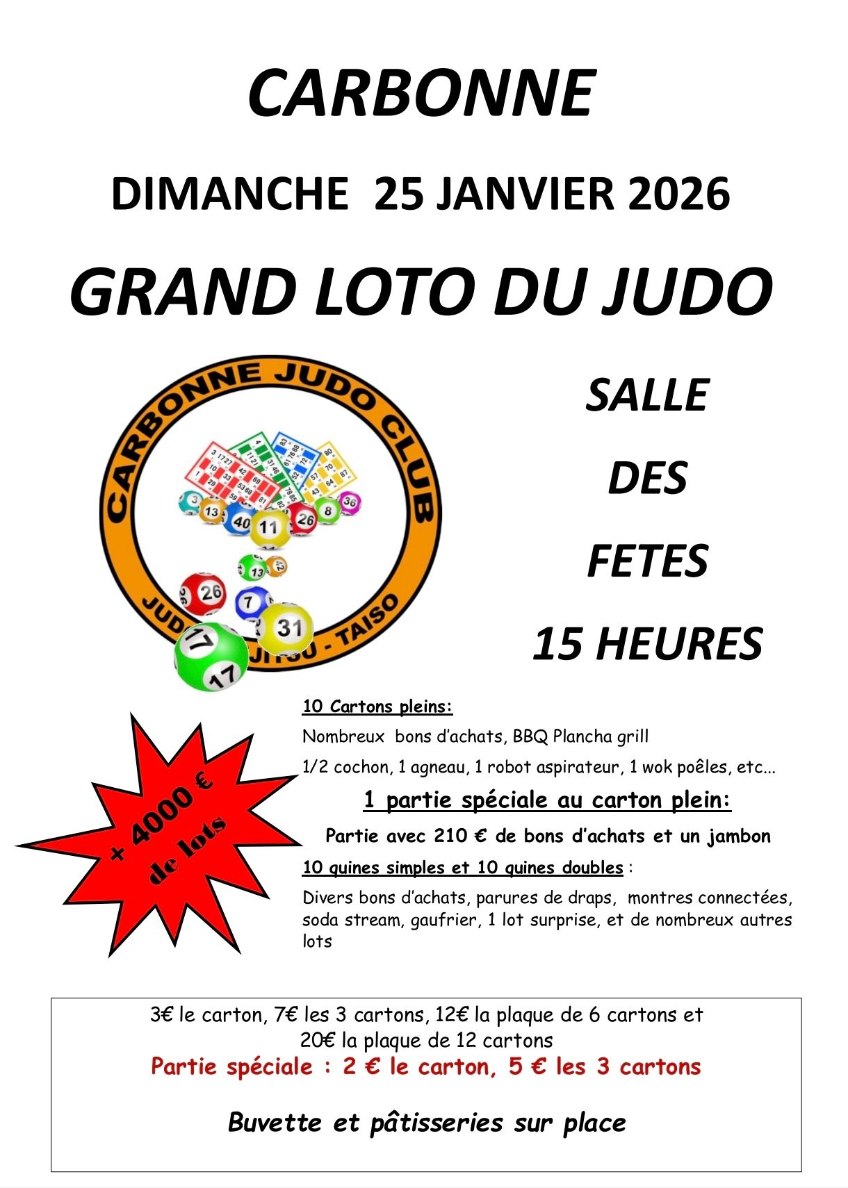 Venez partager un moment en participant au grand loto du judo à Carbonne !