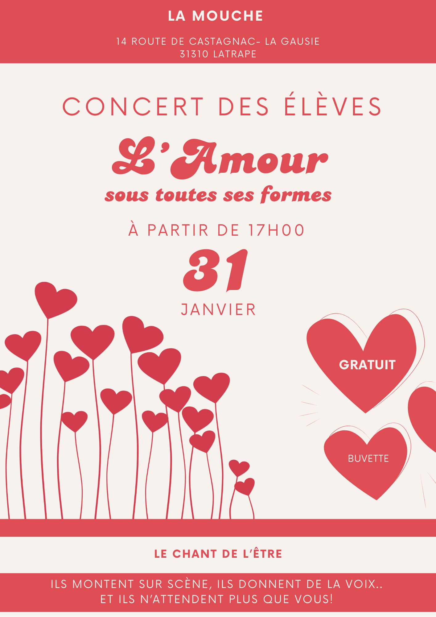 Venez assister au concert des élèves “L’Amour sous toutes ses formes” à Latrape.