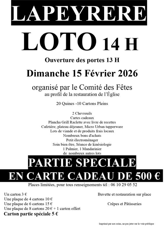 Venez participer au loto de Lapeyrère et tenez de gagner de nombreux lots !