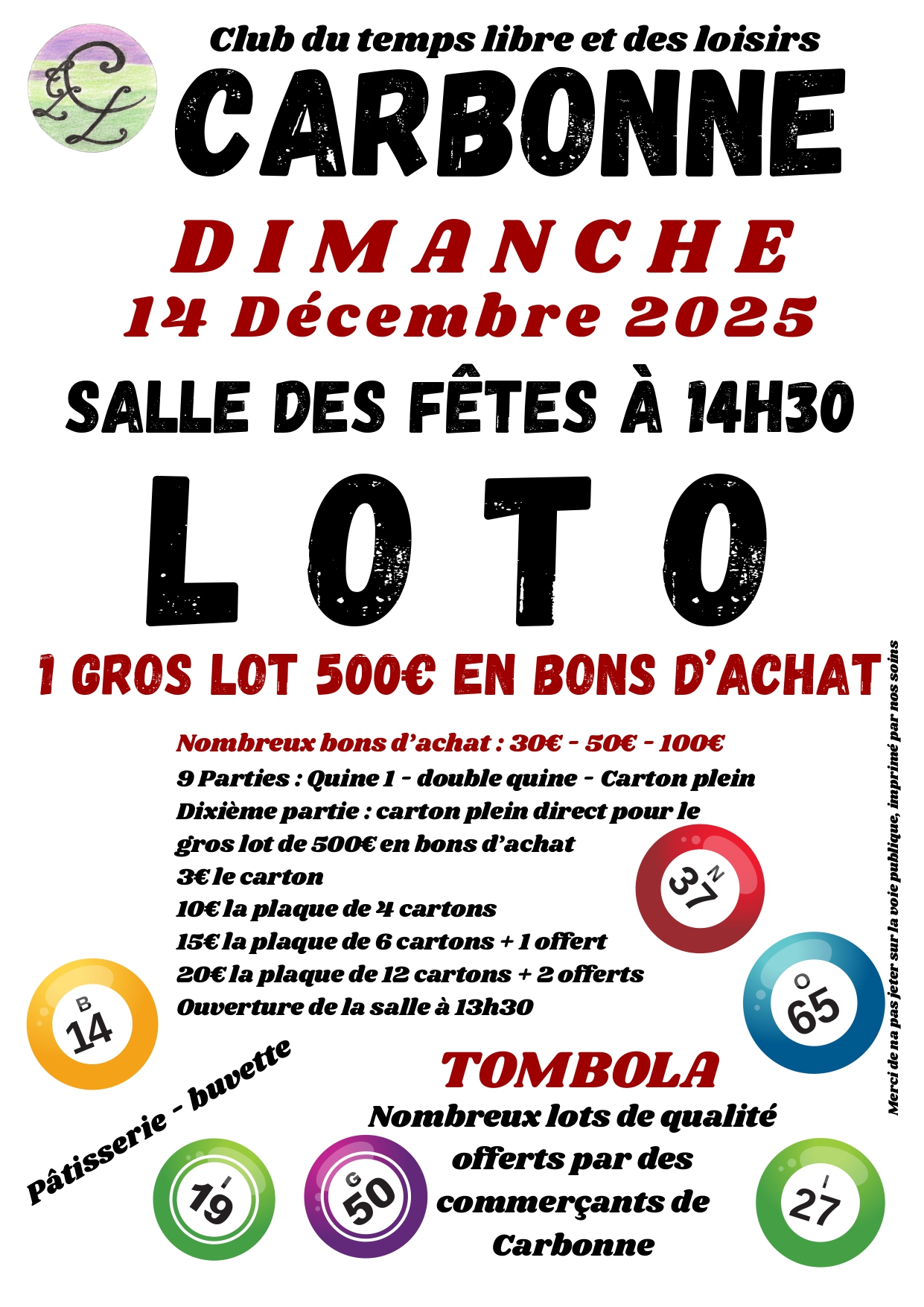 Venez participer au Loto du Club du temps libre et des loisirs de Carbonne !