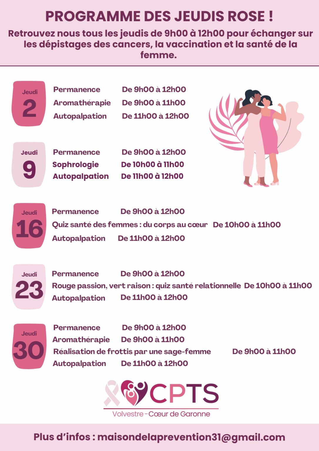 Tous les jeudis d'octobre, venez échanger sur les thématiques des dépistages des cancers, de la vaccination et de la santé de le femme.