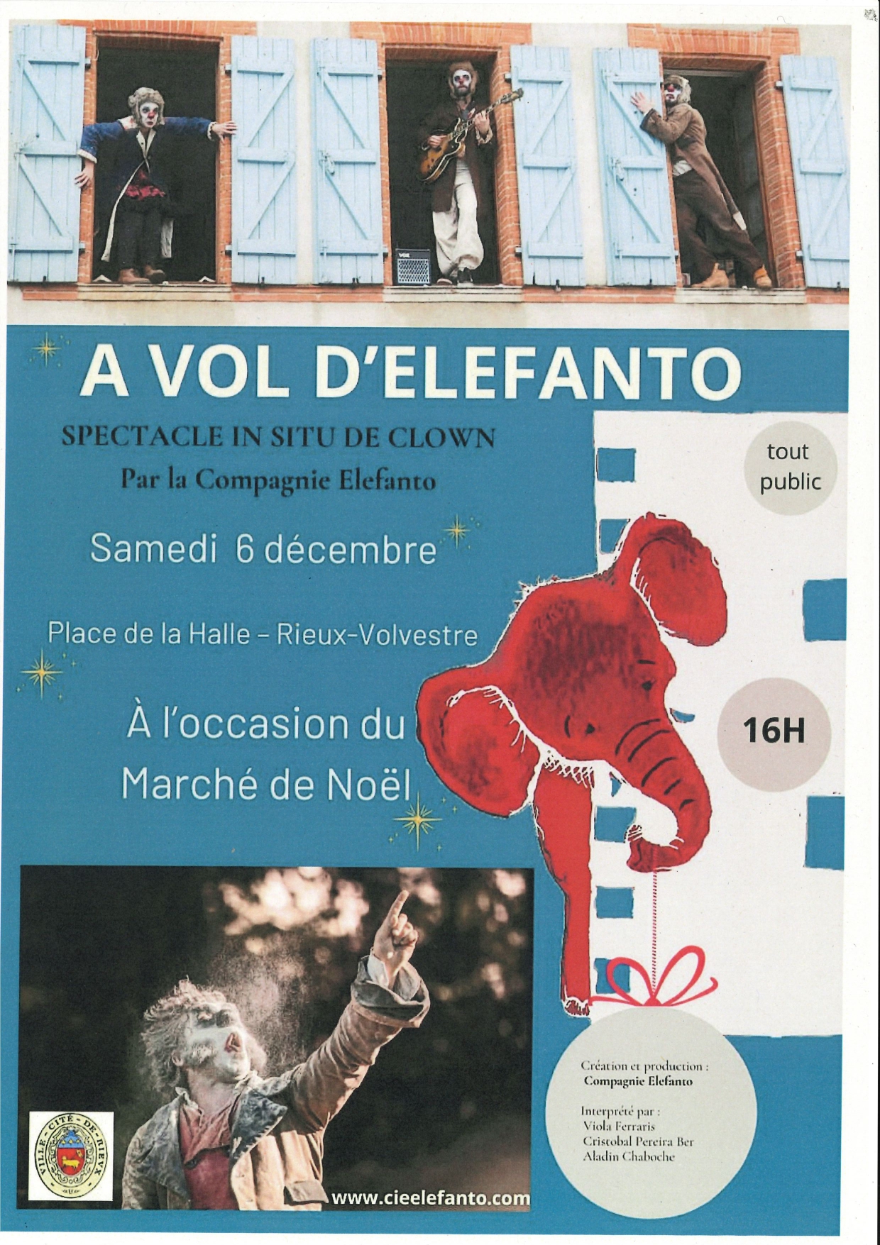 Artisans, créateurs, produits régionaux, présence du Père Noël (à partir de 15h), espaces et ateliers pour enfants, balade à dos d'âne et en calèche spectacle de la CIE Elefanto (16h)
