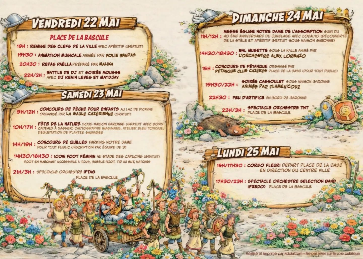 Du 22 au 25 mai 2026, Cazères vibre au rythme de sa grande fête annuelle ! Pendant 4 jours, la ville se transforme en un véritable terrain de convivialité où se mêlent musique, traditions, gastronomie et animations pour tous les âges. Entre bandas entraînantes, soirées dansantes, feu d’artifice en bord de Garonne et corso fleuri, chaque instant est une invitation à partager, rire et célébrer ensemble dans une ambiance chaleureuse et festive.