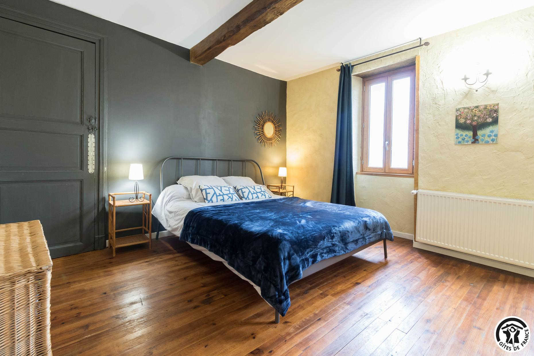 - une grande chambre lumineuse avec un lit en 160 et un bureau