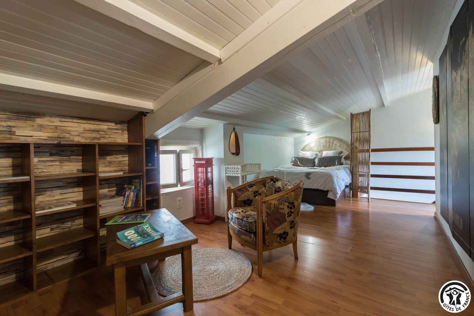 Détail des pièces : rez-de-chaussée : séjour : coin salon avec canapé convertible en 160*200 et cheminé insert, espace repas et cuisine intégrée. Premier étage : chambre en mezzanine (1 lit double en 140*190cm), chambre enfant (2 lits en 90*190 dont 1 superposé et un bureau), salle de bains, WC. Climatisation à l'étage.