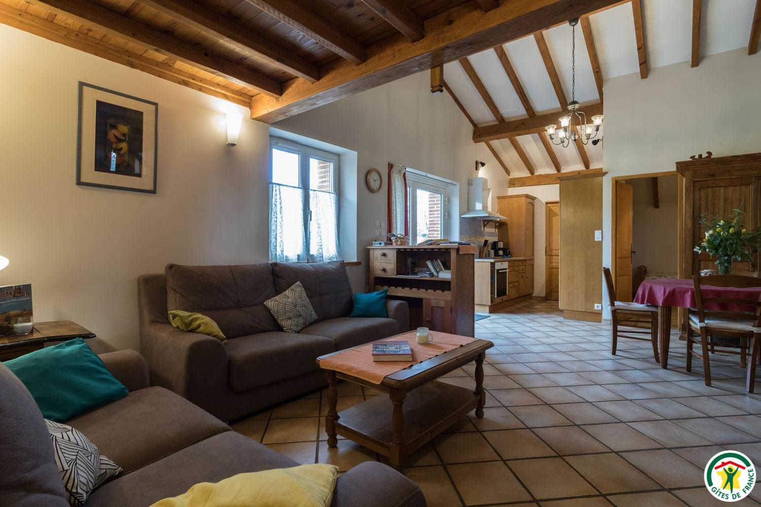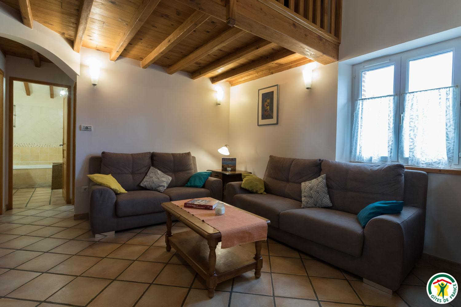 - A l'étage : petite mezzanine (canapé convertible pour 2 personnes) tenant lieu de salon de lecture + jeux + bureau. Chauffage au sol par géothermie.